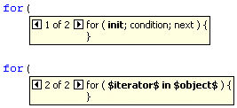 Overloaded commands (functions or methods that can be invoked with different sets of parameters) such as gotoAndPlay() or for display an indicator that lets you select the parameter you want to set. To select the parameter, click the small arrows or press Control+Left Arrow and Control+Right Arrow.