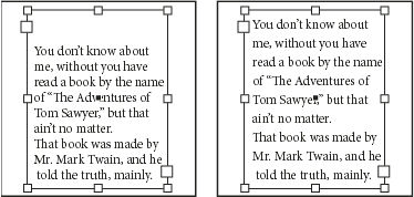 You can align text to the top, center, or bottom of the frame using each paragraph’s leading and paragraph spacing values. You can also justify text vertically, which evenly spaces lines regardless of their leading and paragraph spacing values.