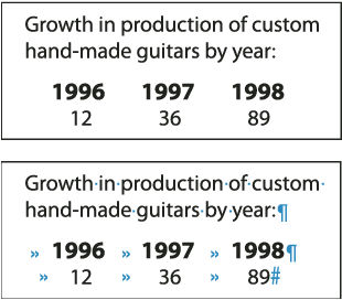 Nonprinting characters such as those for spaces, tabs, ends of paragraphs, index markers, and ends of stories appear. These special characters are visible only in a document window and a story editor window; they don’t print or output to formats such as PDF and XML. The hidden characters appear in the same color as the layer color.