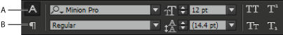 Use the Control panel to change the appearance of text. When text is selected or when the insertion point is placed in text, the Control panel displays either the character formatting controls or the paragraph formatting controls, or a combination of both, depending on your monitor resolution. These same text formatting controls appear in the Character panel and Paragraph panel. You can also use the Character panel and Paragraphs panel to change the appearance of text.