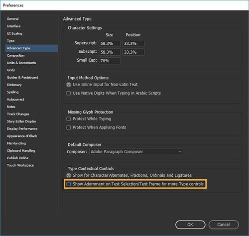 In InDesign, go to Edit > Preferences > Advanced Type.