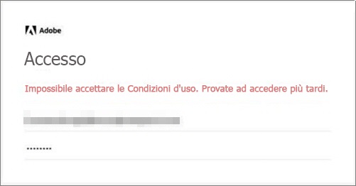 - Acrobat visualizza un errore: impossibile accettare le Condizioni d'uso. Prova ad accedere più tardi.