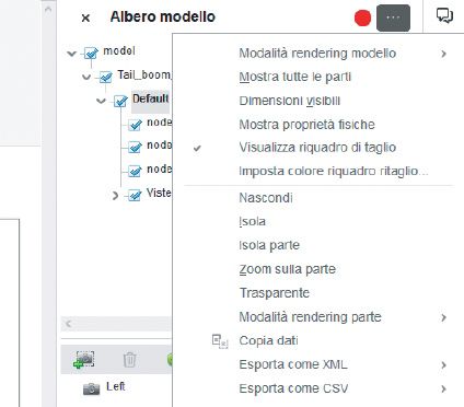 L’Albero modello appare sul lato destro dello schermo. Per aprire l’albero modello, è possibile selezionare l’opzione