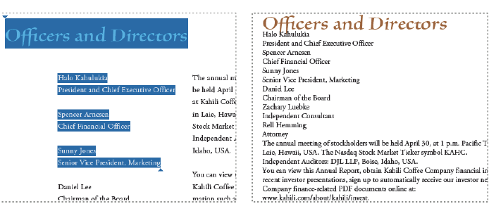 Prima della ridisposizione di un documento senza tag, vengono inseriti dei tag temporanei da Acrobat. È possibile che sia l’autore stesso ad applicare i tag ai documenti PDF creati, al fine di ottimizzarli per la ridisposizione. L’aggiunta di tag garantisce che i blocchi di testo vengano ridisposti e che il contenuto segua sequenze appropriate, in modo che i lettori possano seguire una storia che si svolge su diverse pagine e colonne senza che altre storie interrompano il flusso.