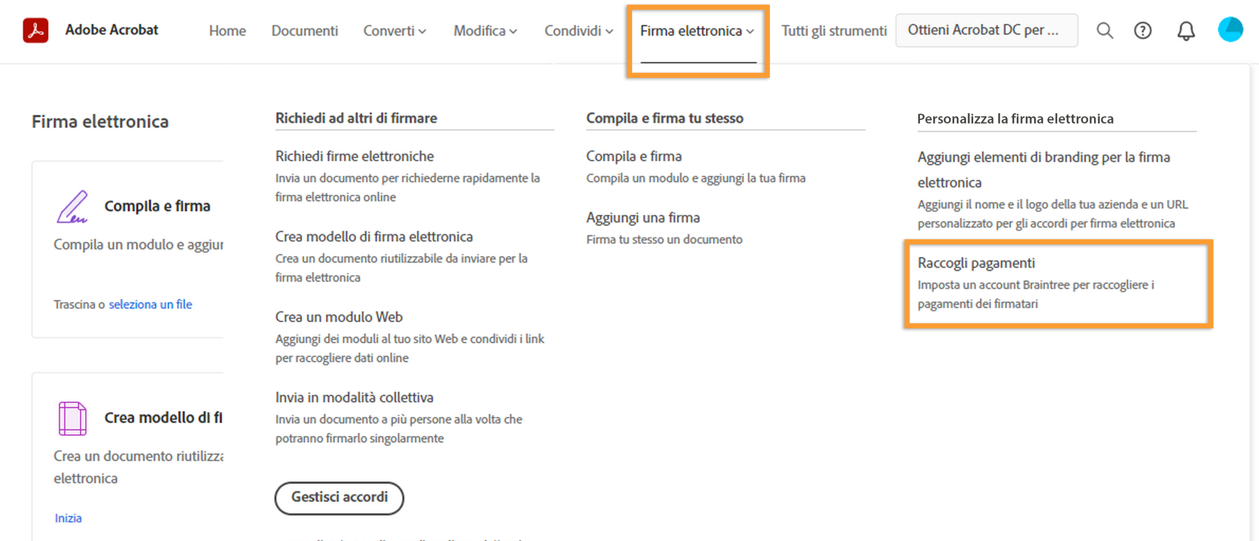 Adobe Acrobat Pro con i servizi online è la soluzione PDF completa per lavorare con i documenti più importanti su computer desktop, Web e dispositivi mobili. Aggiorna le app Acrobat per desktop e dispositivi mobili oppure accedi ad Acrobat online per provare le nuove funzioni e i miglioramenti introdotti.