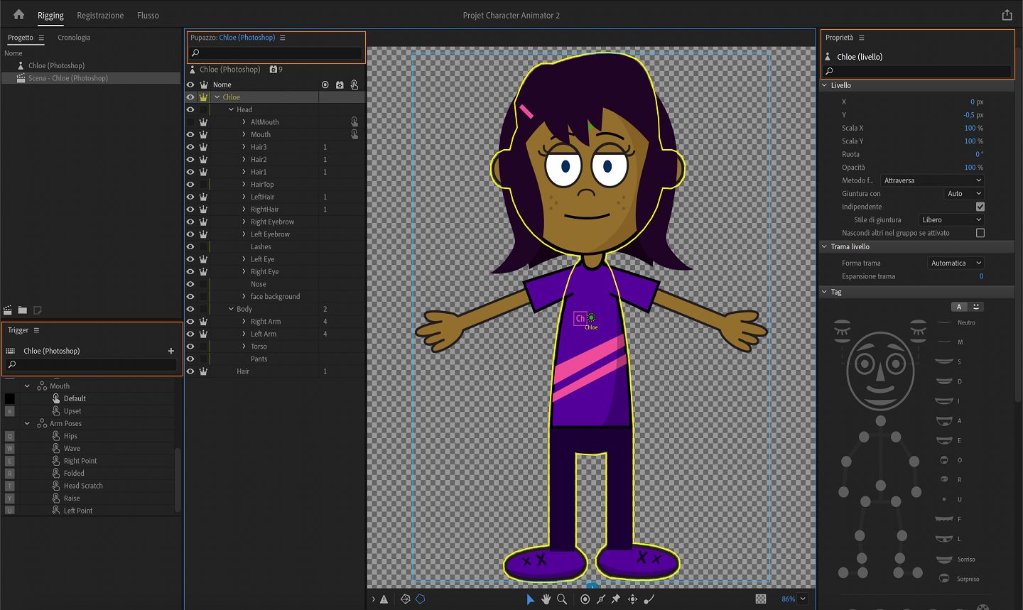 Insieme, tag e comportamenti consentono di animare il personaggio e portarlo alla vita. I tag possono essere applicati a livelli e maniglie per un’identificazione facile e una maggiore operatività. I comportamenti controllano la struttura dei livelli o l’aspetto di un pupazzo. Continua a leggere per ulteriori informazioni.