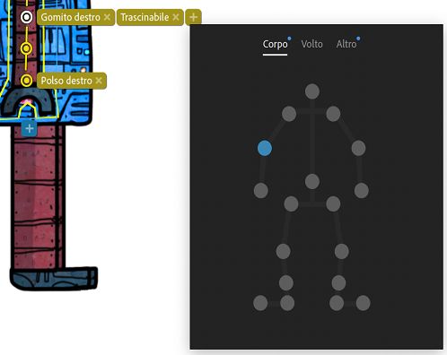 Se hai assegnato tag relativi alla parte sinistra al lato destro di un pupazzo, ad esempio, il tag Spalla sinistra al posto del tag Spalla destra o viceversa, puoi cambiare i tag più rapidamente.