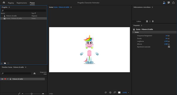 - Fai clic su Aggiungi a nuova scena nel pannello Progetto.