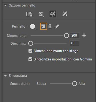Per ripristinare il comportamento precedente (predefinito) dei pennelli, disattivate la casella di controllo "Dimensione zoom con stage" nella finestra di ispezione Proprietà del pennello.