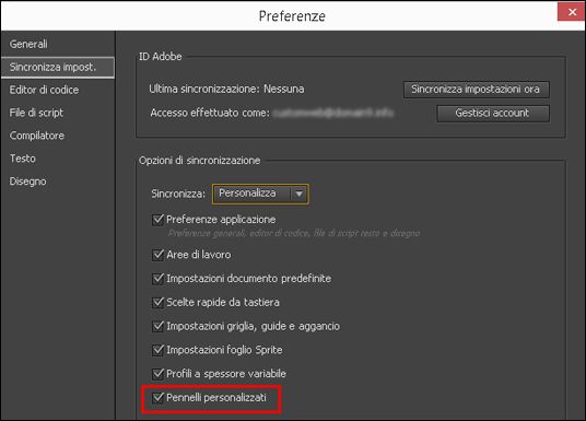 Sincronizzazione dei pennelli personalizzati nel cloud