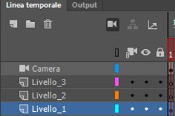 Ogni livello è rappresentato da linee colorate uniche nella finestra di dialogo della profondità del livello. Potete visualizzare i colori che rappresentano ciascuno dei livelli nella finestra Linea temporale.