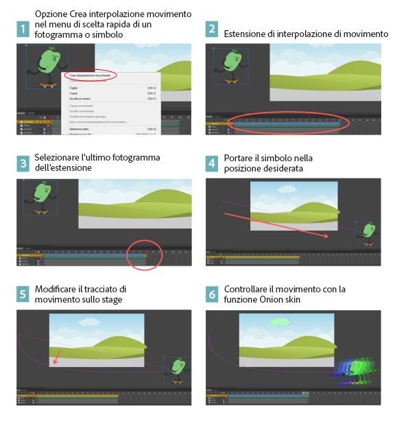 Potete aggiungere altre interpolazioni a un livello di interpolazione esistente. In questo modo potete usare meno livelli quando create dei contenuti Animate con animazioni.