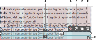 (Layout adattivo e layout sensibile)Dreamweaver 12.2 Creative Cloud include numerosi miglioramenti ai layout a griglia fluida come il supporto degli elementi strutturali HTML5 e la modifica semplificata degli elementi nidificati. Per una panoramica sull'elenco completo dei miglioramenti, fate clic qui.