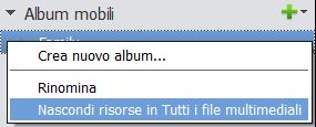 È possibile scegliere di nascondere tutte le risorse in un album mobile da qualsiasi vista Oggetto multimediale. Il supporto diventano visibili quando applicate le operazioni di ricerca.