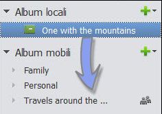 Potete trascinare un album mobile su una categoria locale. I file multimediali dell’album mobile vengono scaricati perché sono disponibili sull’account online e memorizzati localmente. Successivamente, i file multimediali scaricati vengono eliminati dall’account online.