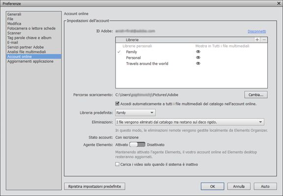 Configurare Elements Organizer per utilizzarlo con l’account online