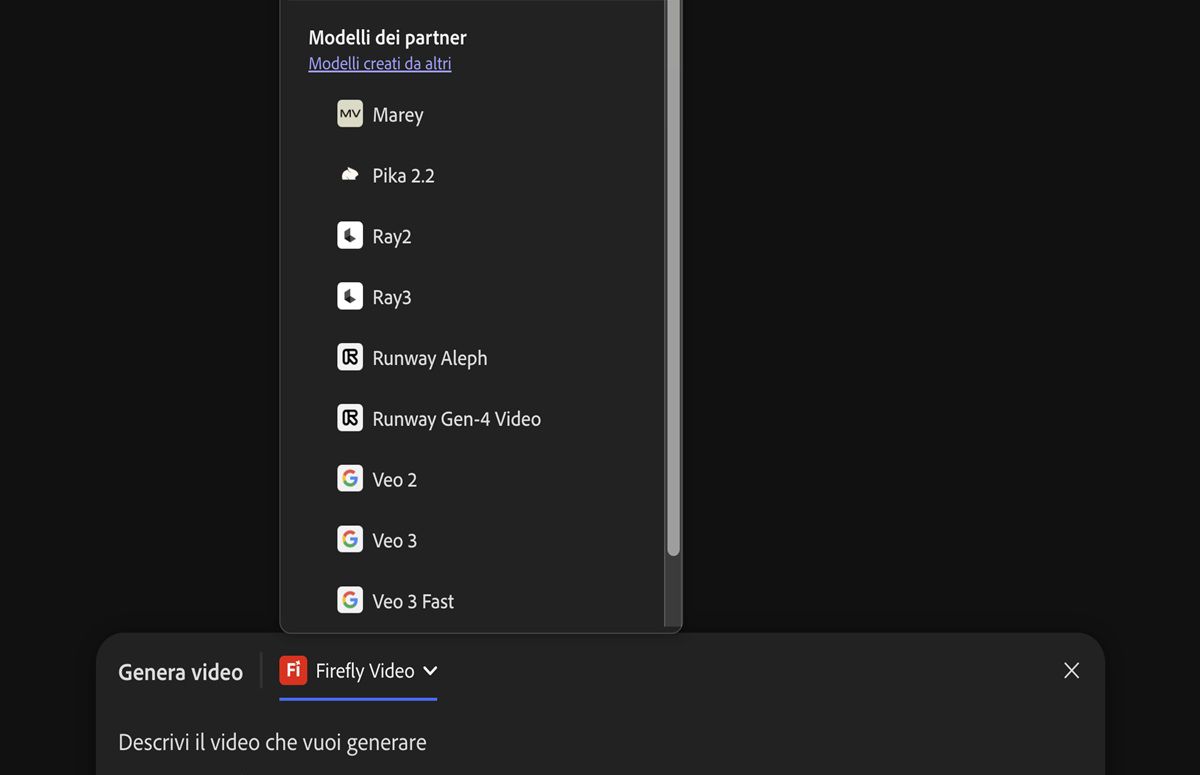 Per utilizzare le funzioni di IA generativa, come la generazione di immagini, la rimozione dello sfondo, il riempimento o l'espansione generativa e la generazione di video, devi avere dei crediti generativi. Per le funzionalità premium, incluso l'utilizzo di modelli partner per generare immagini e video, è necessario un abbonamento a una versione di Creative Cloud che includa l'accesso alle funzioni premium.