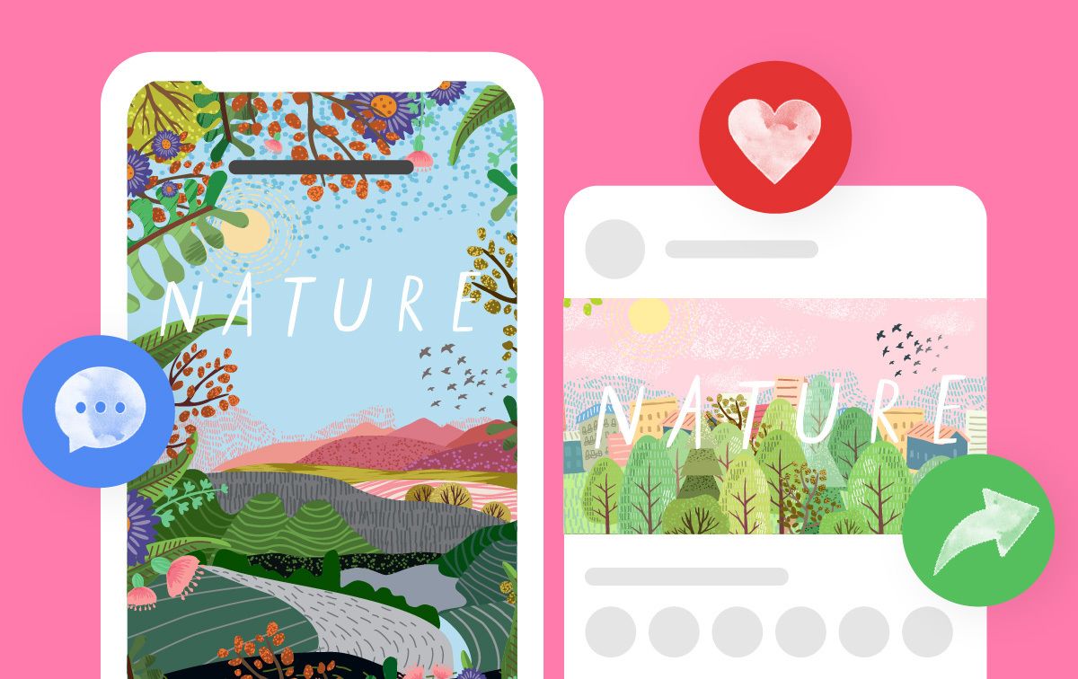 Crea rapidamente i formati di documento perfetti per ogni piattaforma di social media con la nuova scheda Social nei predefiniti dei documenti.