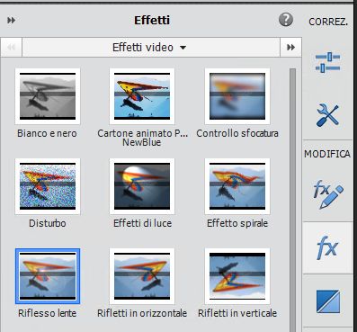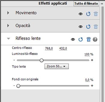 Nel pannello Effetti, trascina un effetto (ad esempio Riflesso lente) sulla clip per applicarlo.