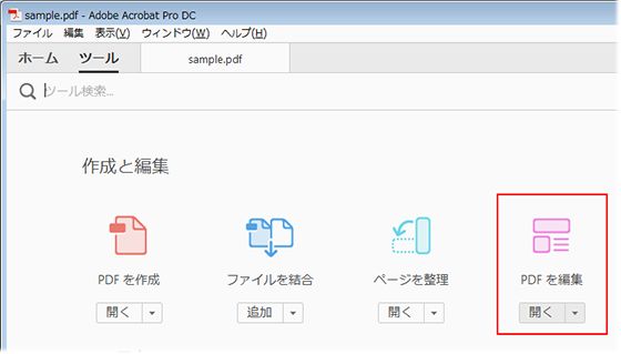 「作成と編集」セクションの中から「PDF を編集」を選択します。