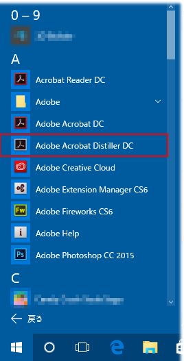 スタート/すべてのプログラム/Adobe Acrobat Distiller を選択します。 - Windows 8