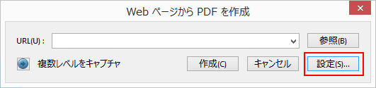 Web ページから PDF を作成 ダイアログボックスで、「設定」ボタンをクリックします。