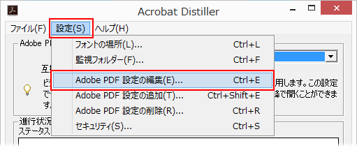 Acrobat Distiller が起動したら、設定/Adobe PDF 設定の編集 を選択します。