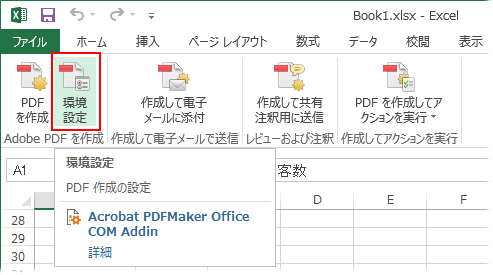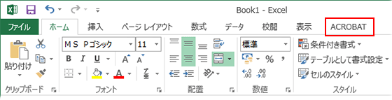 Office アプリケーション(Word、Excel など)を起動し、「ACROBAT」タブを開きます。