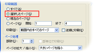 任意の印刷範囲で [選択したページ] にチェックが付いていることを確認します。