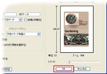 選択されている用紙サイズにあわせて、大きいページが縮小されます。 |