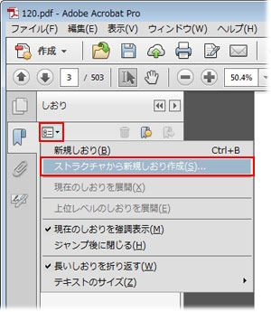 ※ 「ストラクチャから新規しおり作成」がグレーアウトしている場合は、文書が構造化されていません。