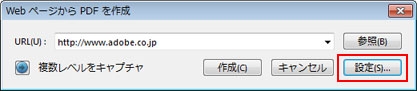 Web ページから PDF を作成 ウィンドウで「設定」ボタンをクリックします。