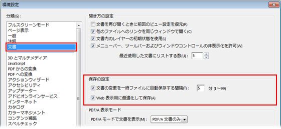 Acrobat では、初期設定で編集中の PDF 文書を自動的に保存するように設定されています。