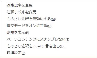 右クリックしたときに表示されるメニューで、ものさしツールのオプションを設定します。