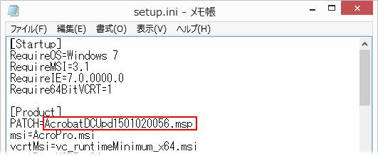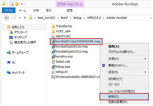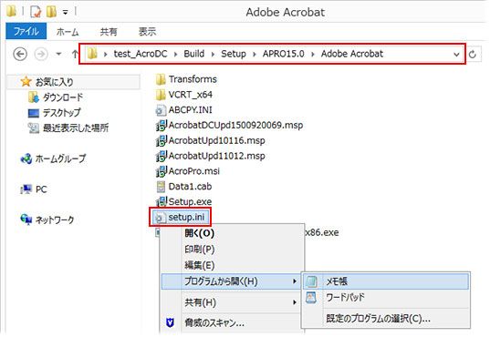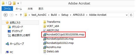 例) C:\Users\<ユーザー名>\Desktop\<パッケージ名>\Build\Setup\APRO15.0\Adobe Acrobat