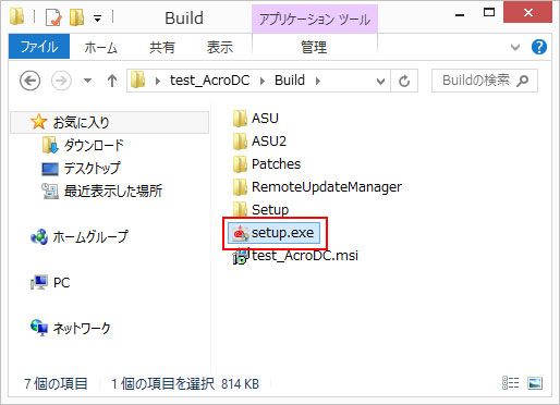 例) C:\Users\<ユーザー名>\Desktop\<パッケージ名>\Build\Setup\APRO<バージョン>\Adobe Acrobat