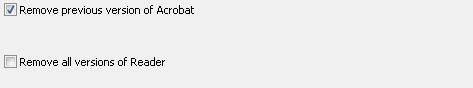 - Remove previous versions of Acrobat : インストールされている旧バージョンの Acrobat を削除し、REMOVE_PREVIOUS プロパティを設定します。Reader は影響を受けません。このプロパティはAcrobat および Reader のインストール時に使用可能です。初期設定はYES です。