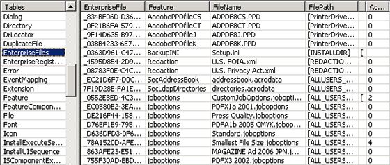 Distiller の設定では、joboptions ファイルを作成するオプションを指定できます。Adobe PDF 設定(PDF 作成設定)を追加および削除したり、初期設定を変更することができます。この機能を設定するには、以下のように EnterpriseFiles テーブルを修正します。