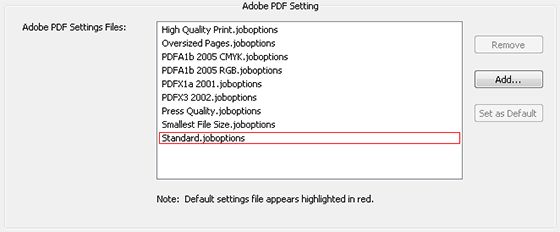 - Adobe PDF Settings の一覧からファイルを選択します。