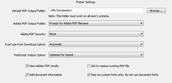 - Adobe PDF Output Folder : 自動的に Adobe PDF の出力フォルダーを設定