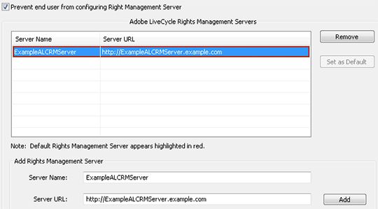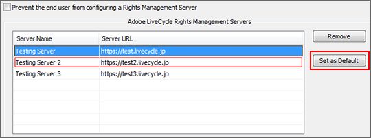 LiveCycle Rights Management サーバーを追加するには、以下の操作を行います。