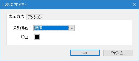 • 右クリックし、メニューから「プロパティ」を選択します。しおりのプロパティ ウィンドウで、スタイルと色を指定します。