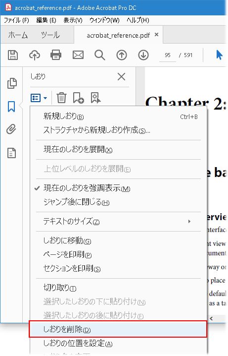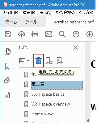 注意 : しおりを削除すると、その下層にある子要素のしおりもすべて削除されます。しおりを削除しても、文書のテキストは削除されません。