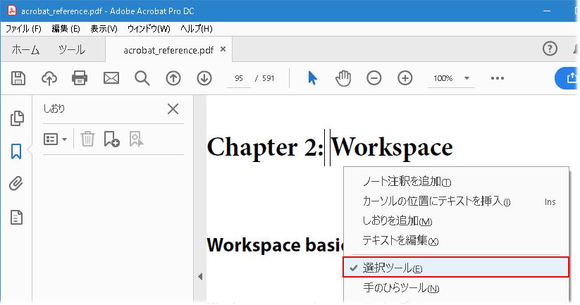 4. 文書上で右クリックして、コンテクストメニューから「選択ツール」を選択します。