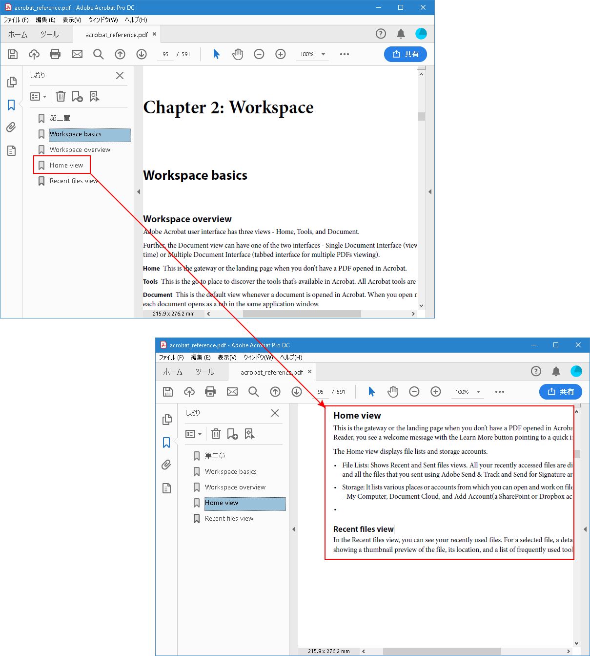 9. 作成したしおりをクリックすると、手順 3. で設定した表示位置に切り替わります。