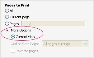 PDF の現在のビューを印刷するには、「印刷するページ」で「詳細設定」をクリックします。