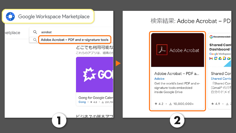 1. Google Workspace Marketplaceで「acrobat」を検索します。