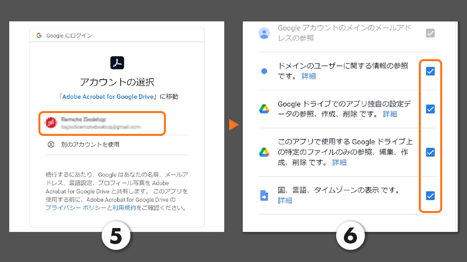 5. Google Driveで使用しているアカウントを選択します。