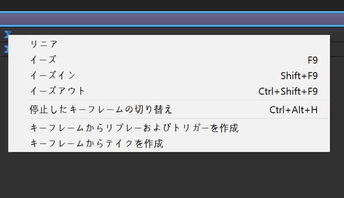 キーフレームメニューのコマンドを開くには、次のいずれかの操作を行います。