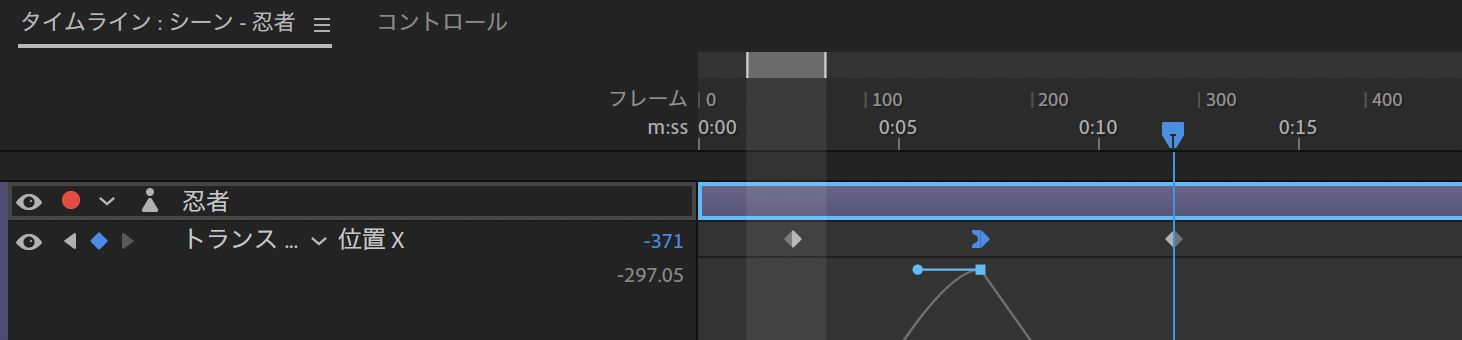 タイムラインのキーフレームナビゲーターを使用して、キーフレーム間を移動したり、キーフレームを設定または削除したりできます。